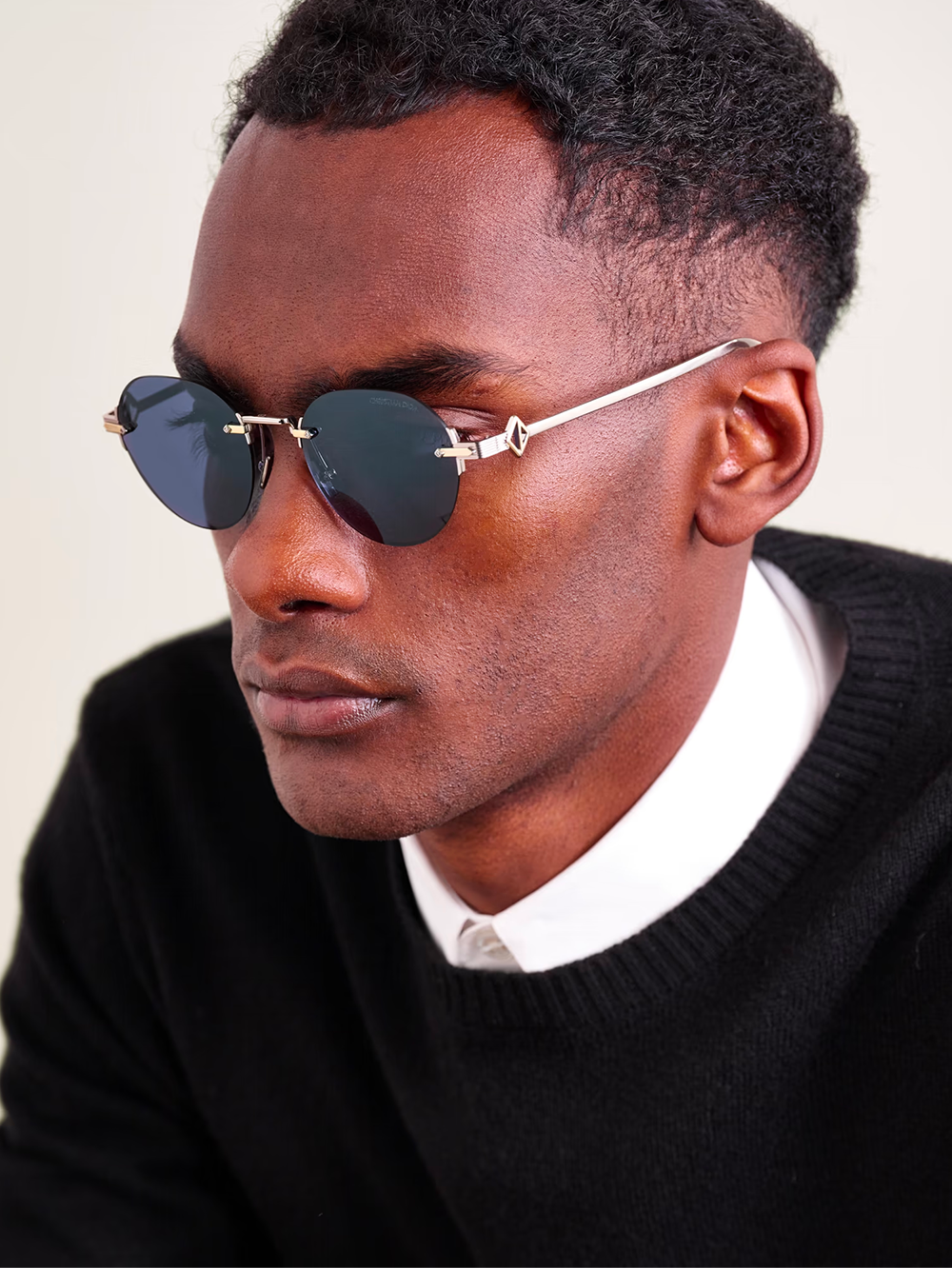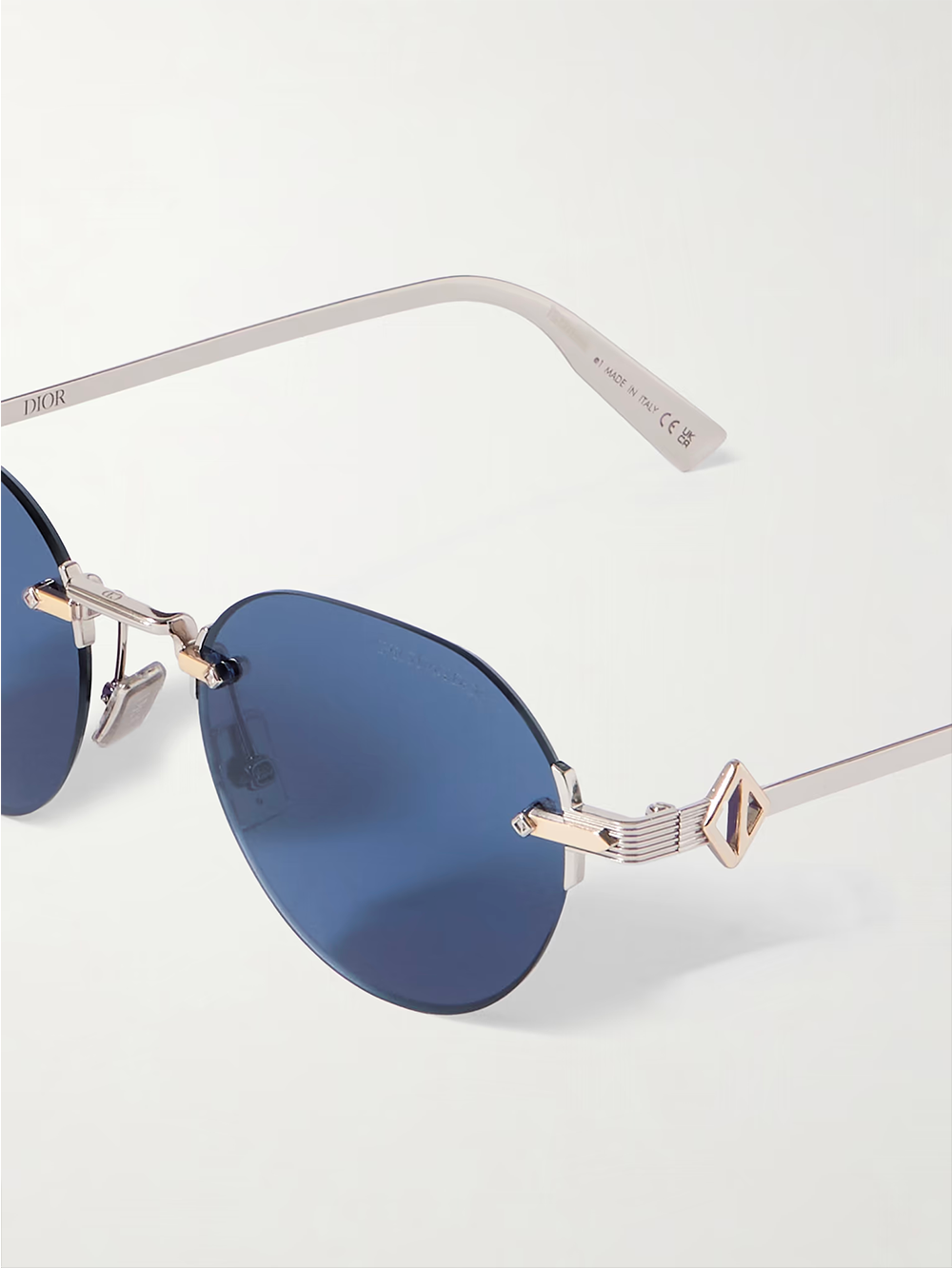The CD DiamondR5U sunglasses embody a contemporary elegance with a bold architectural spirit. The lightweight round rimless frame is elevated by refined metal details. The temples reveal a sculptural hinge adorned with the signature “CD” emblem, echoing the House’s timeless codes of sophistication.