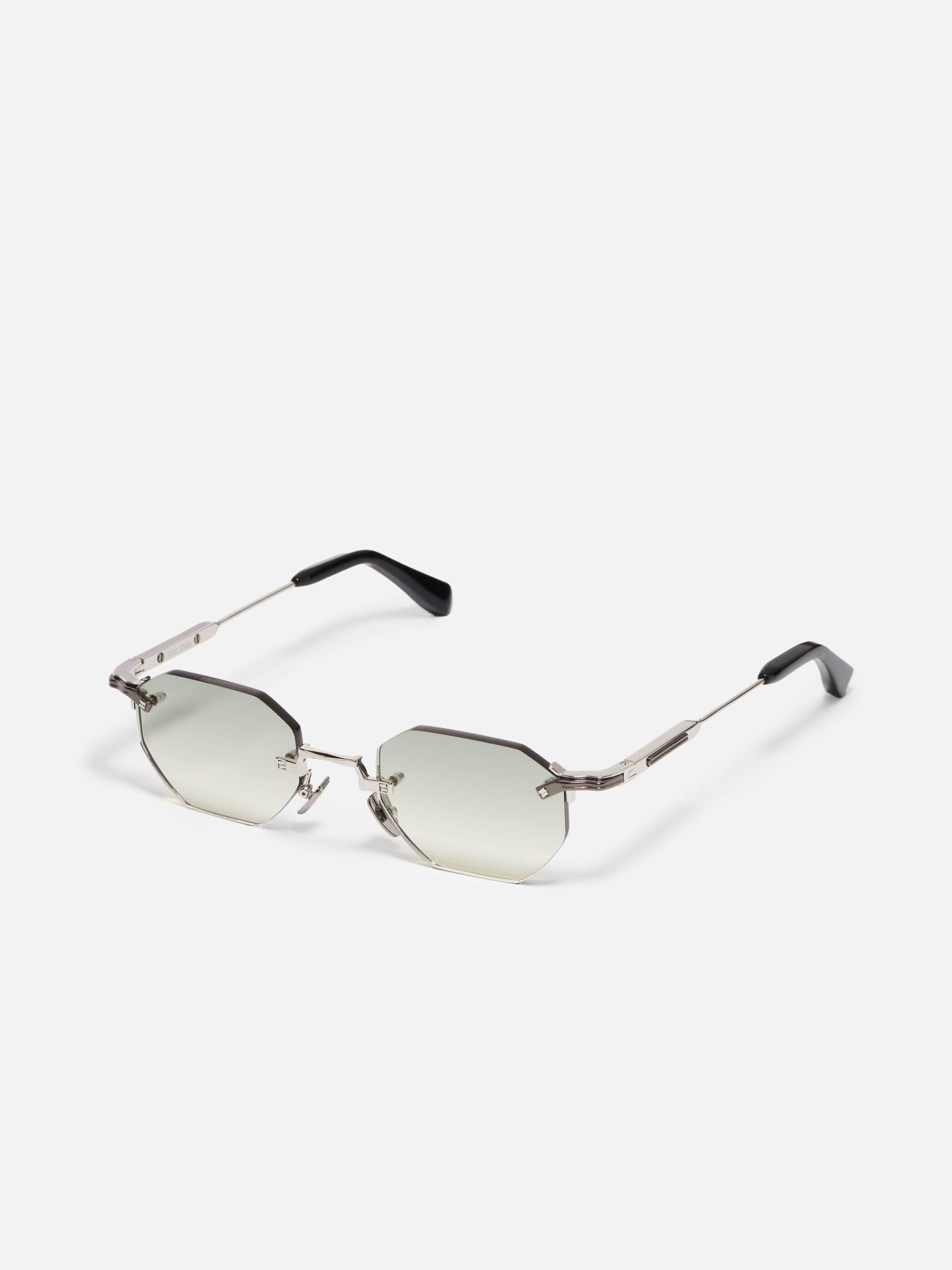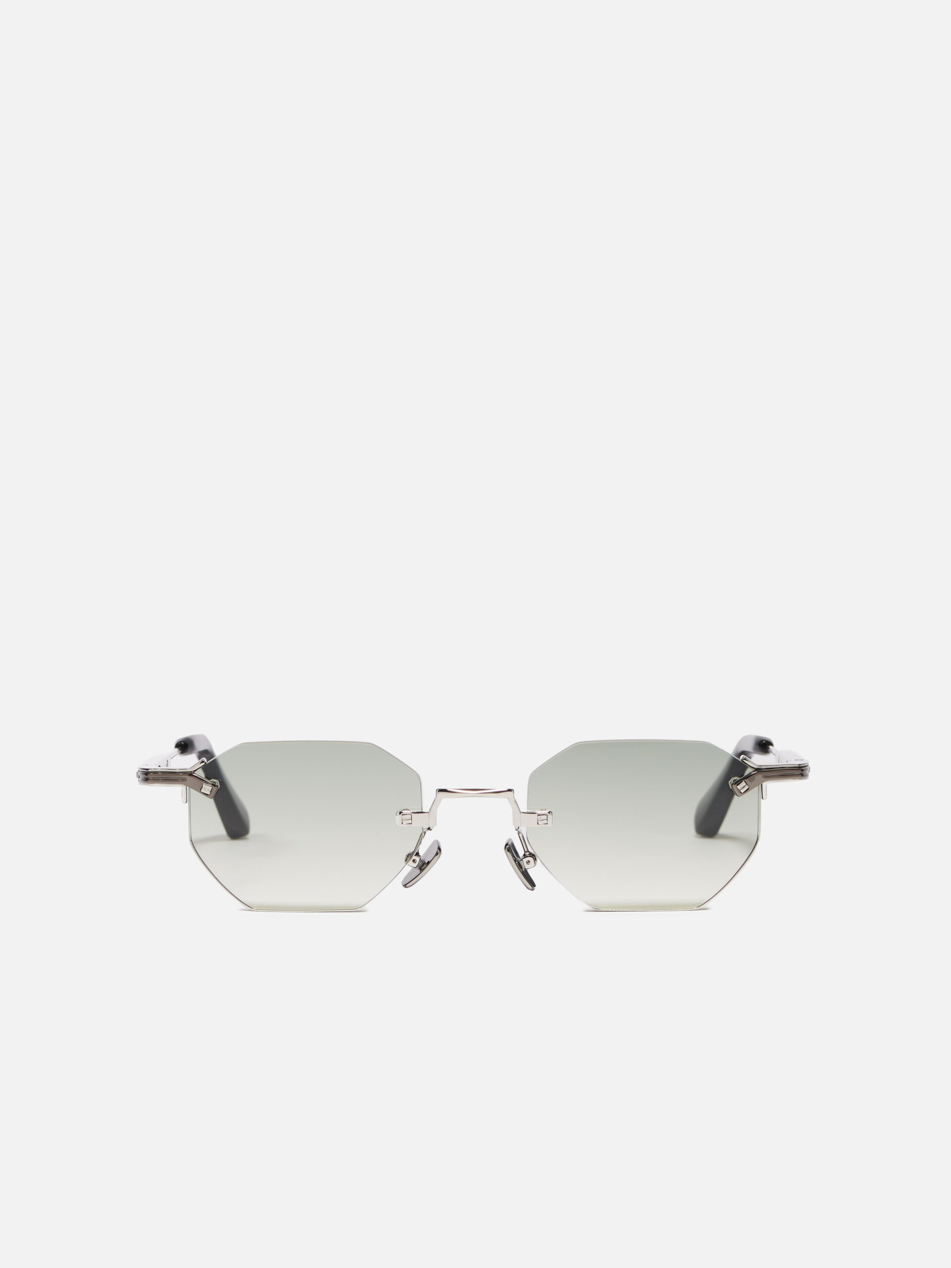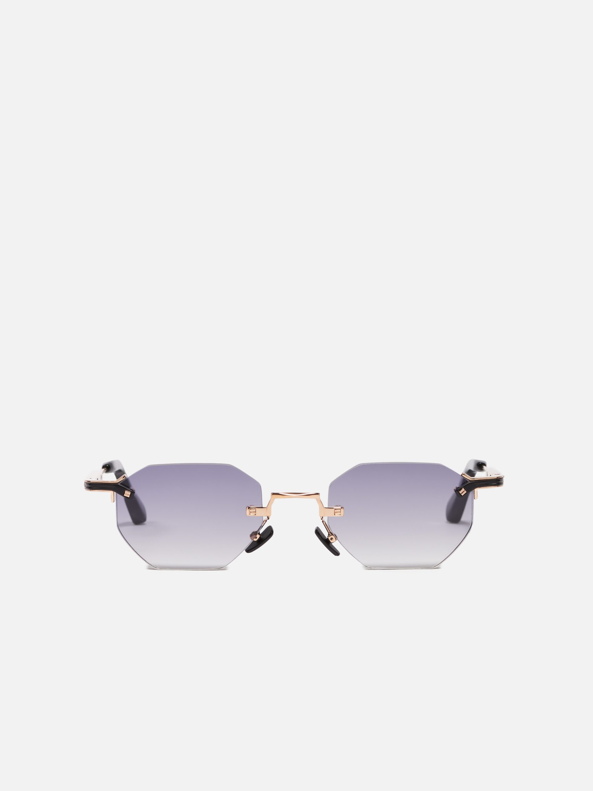 Une forme octogonale unisexe avec des cercles en acétate découpés qui débordent du métal gravé de stries de 4 mm. La monture est accompagnée des nouvelles branches emblématiques ornées des embouts gravés John Dalia. Monture personnalisée en acétate Mocha et alliage plaqué or rose 22 carats (couche d’environ 5 µ et tampon de bijouterie à l’intérieur de la branche). Verres CR39 dégradés gris avec traitement AR. Référence C-126. L’étui et le chiffon de nettoyage sont inclus.