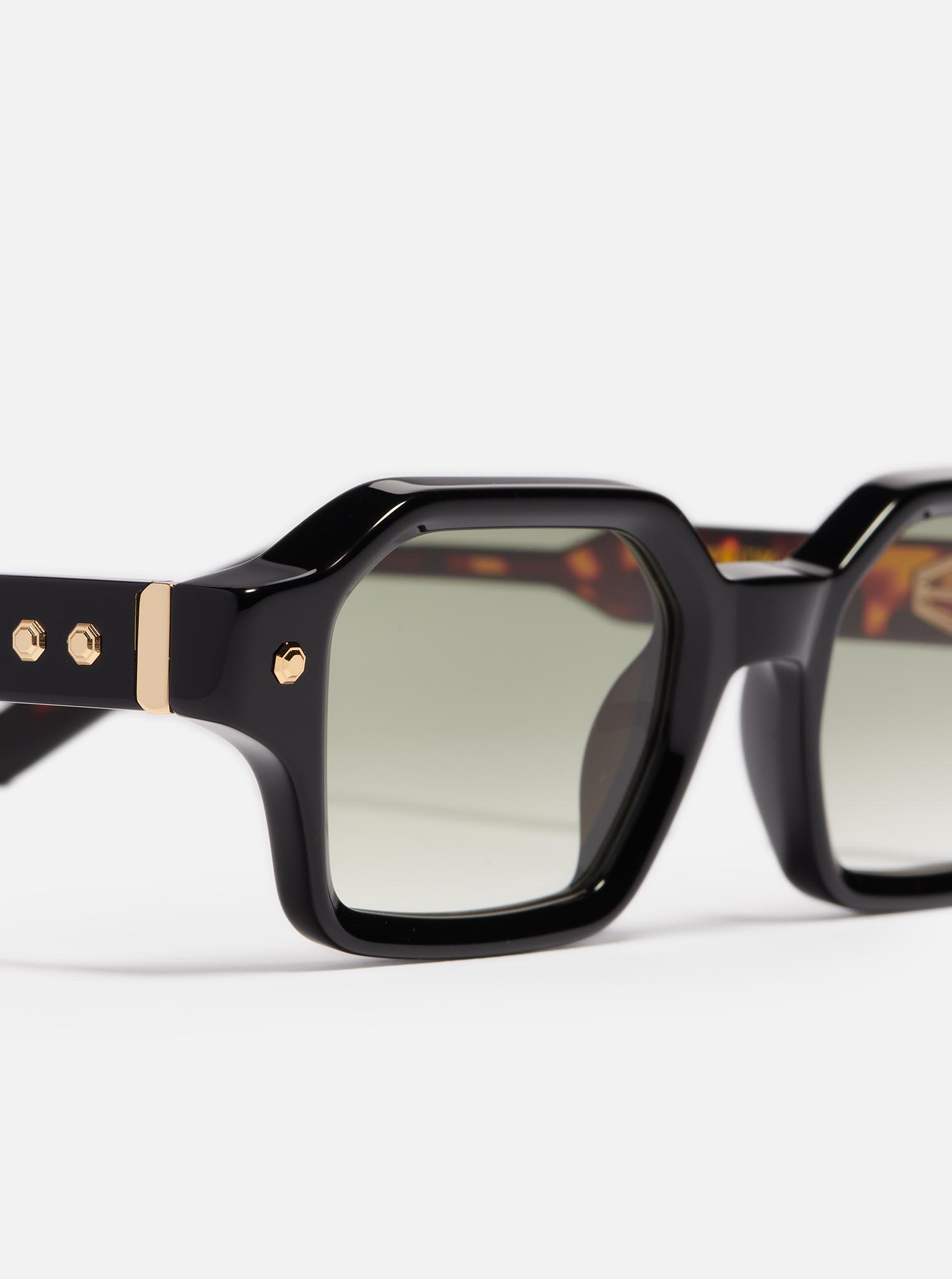 Project 09 is a unisex frame crafted from an 8mm acetate sheet. It features a rectangular shape, a signature John Dalia armature and hinges, as well as decorative pins.