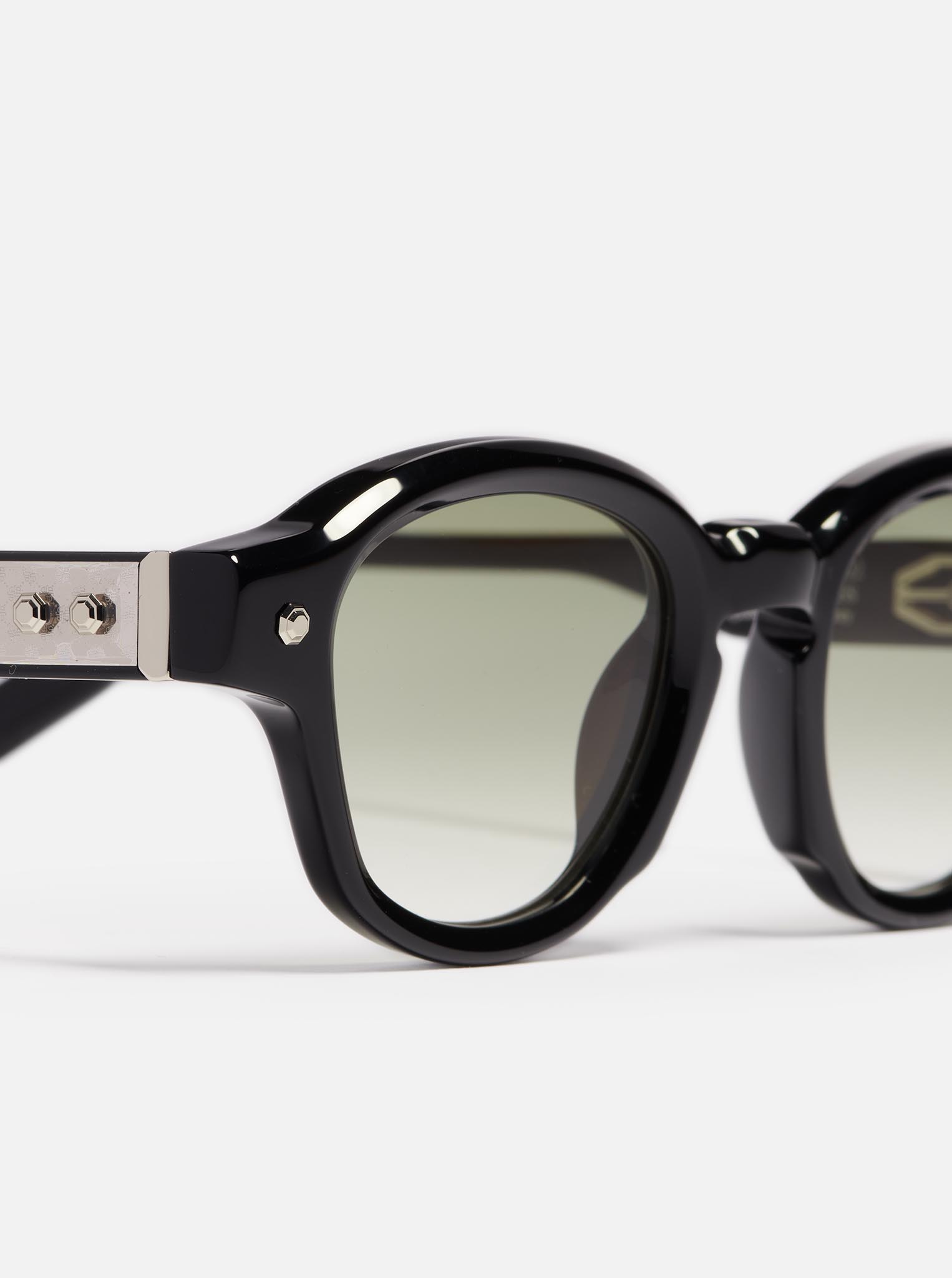 Project 10 is a unisex frame crafted from an 8mm acetate sheet. It features a pantos shape, a signature John Dalia armature and hinges, as well as decorative pins.