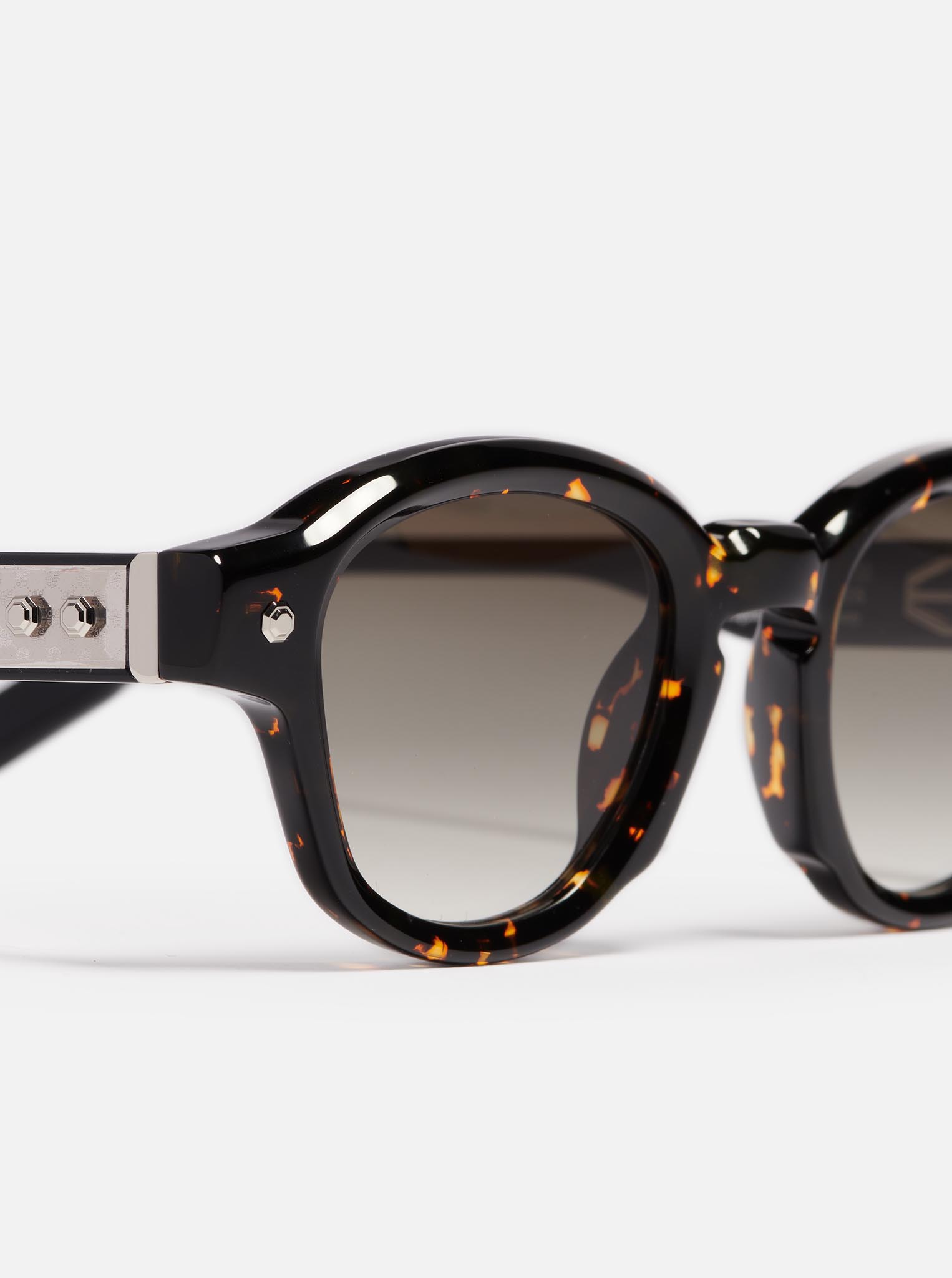 Project 10 is a unisex frame crafted from an 8mm acetate sheet. It features a pantos shape, a signature John Dalia armature and hinges, as well as decorative pins.