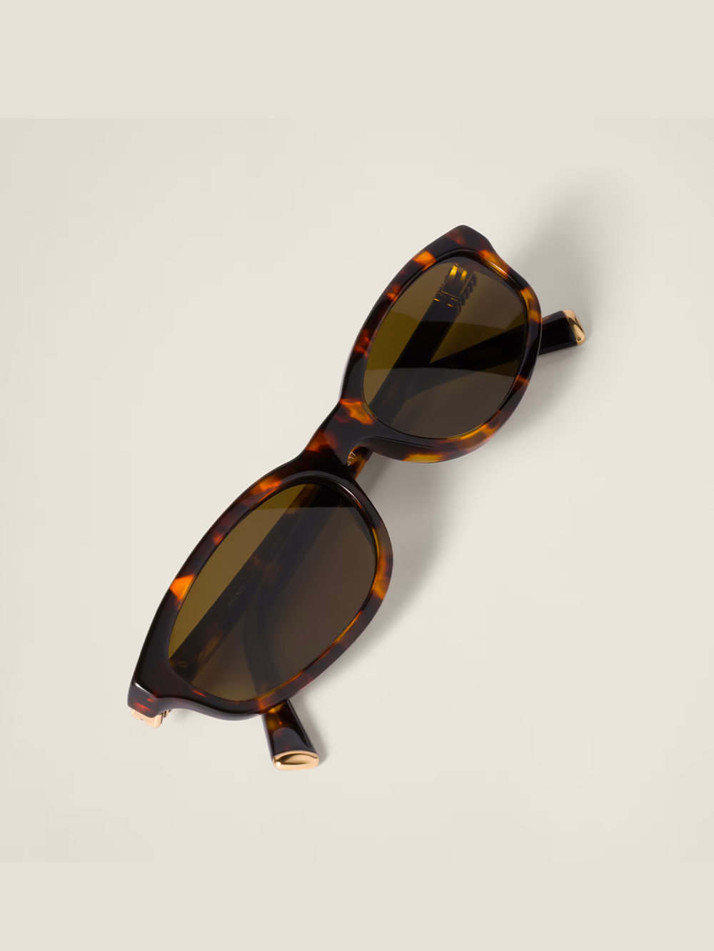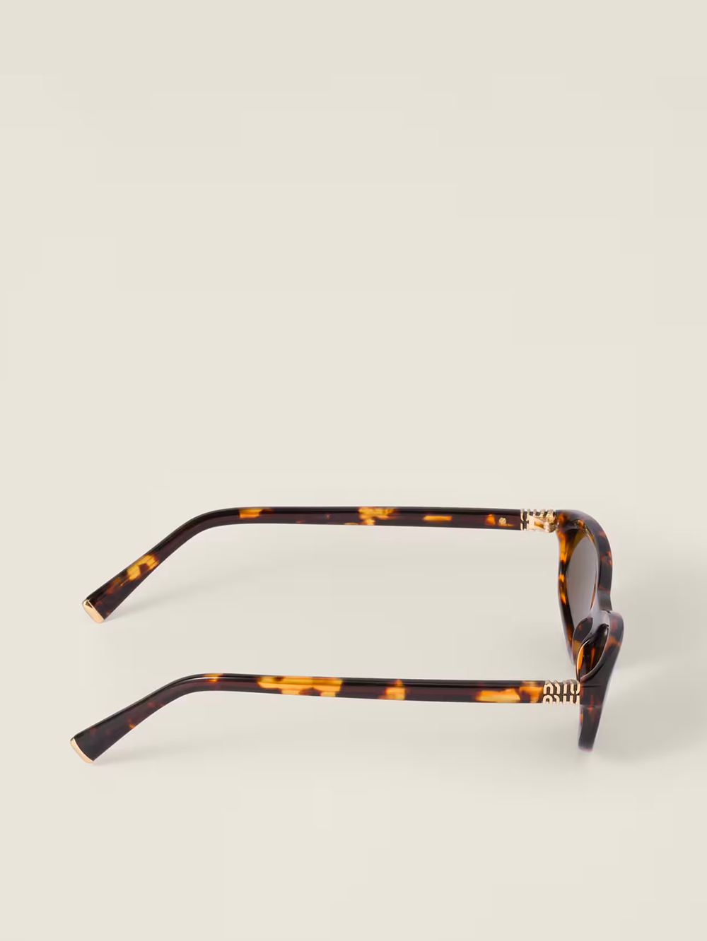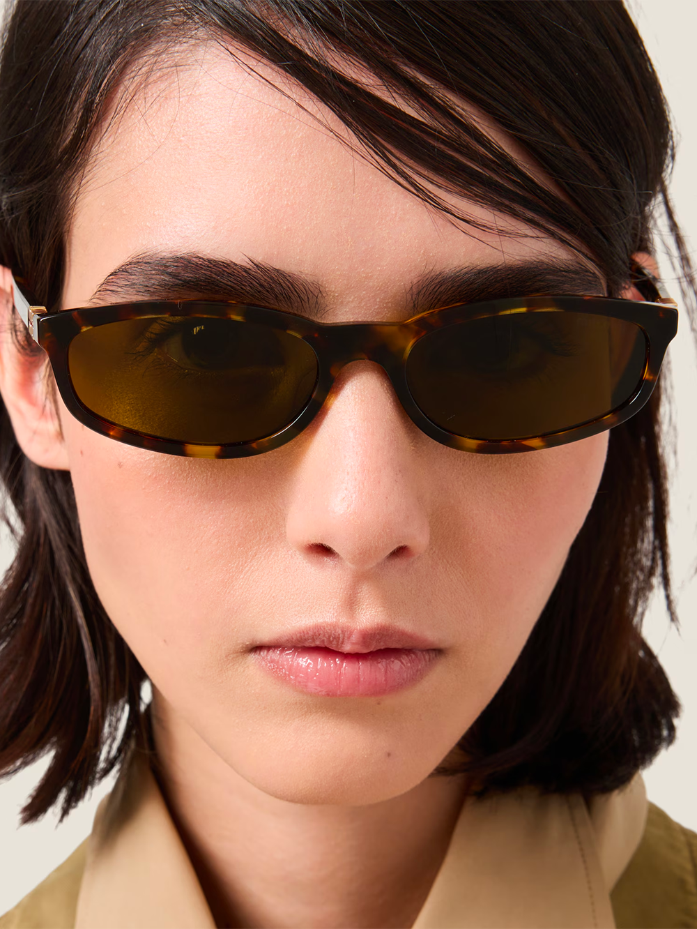Miu Regard sunglasses are reinterpreted in a new sophisticated, classic version. The frame features narrow, rectangular lenses and slim rims that enhance its extreme lightness. The temples are embellished with the refined touch of the Miu Miu vertical logo.