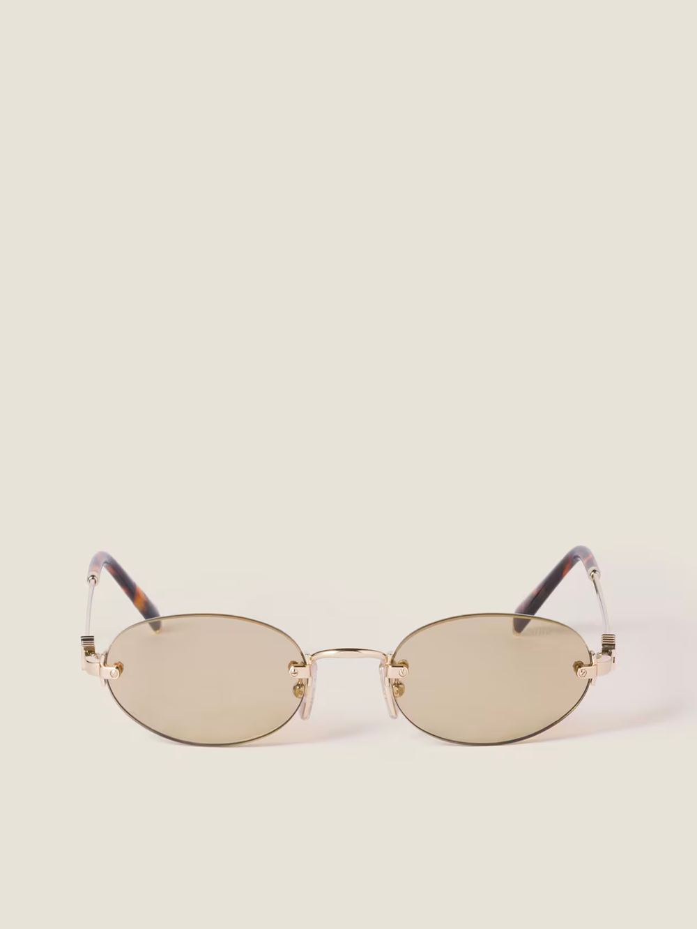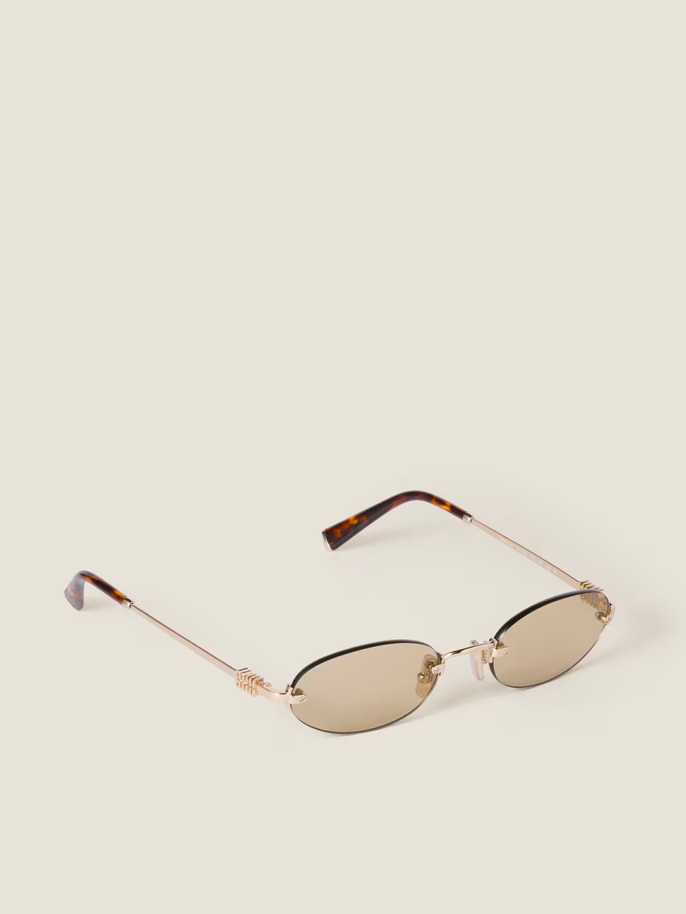 Miu Regard sunglasses are reinterpreted in a new sophisticated, classic version. The frame features narrow, rectangular lenses and slim rims that enhance its extreme lightness. The temples are embellished with the refined touch of the Miu Miu vertical logo.