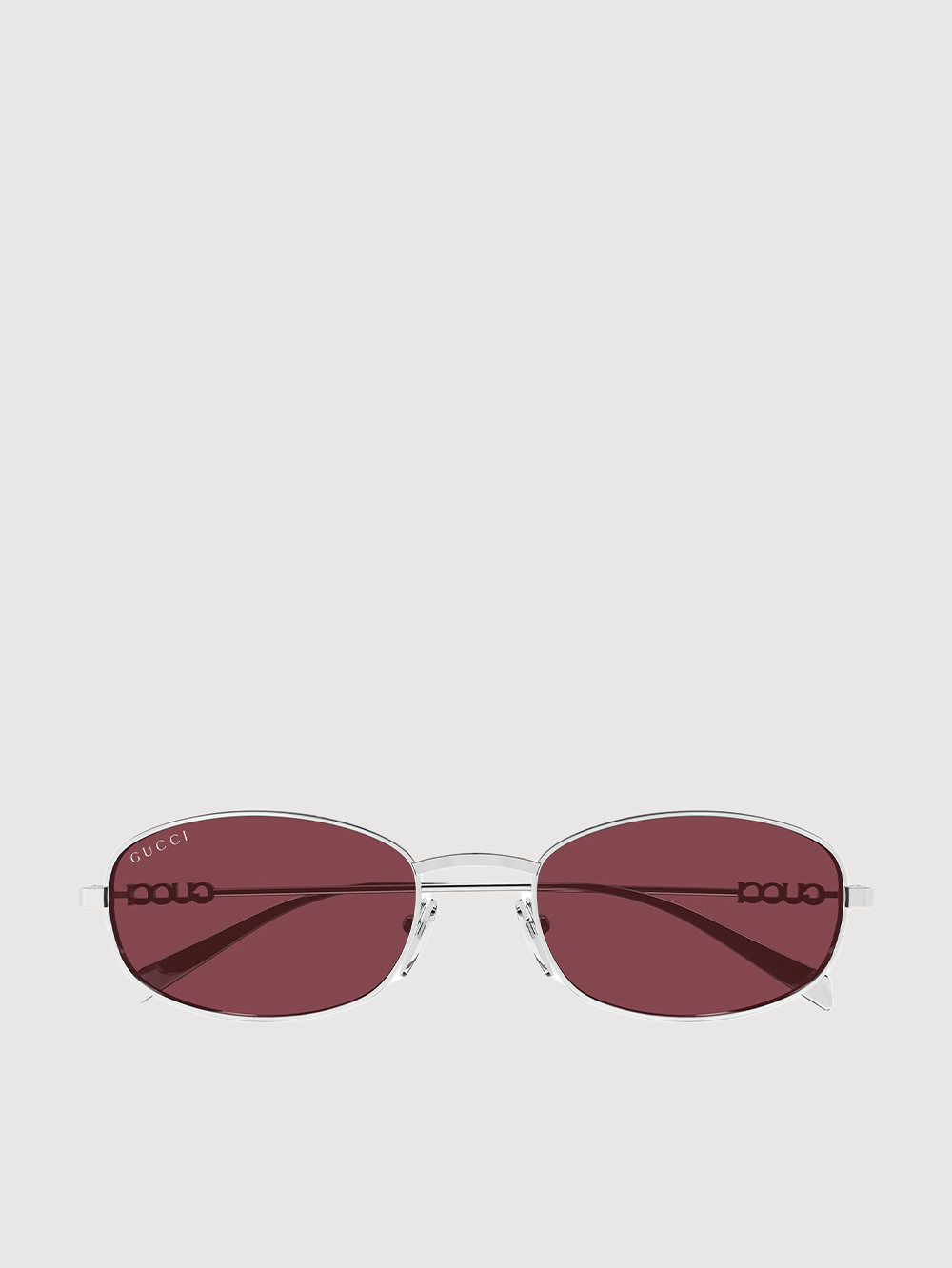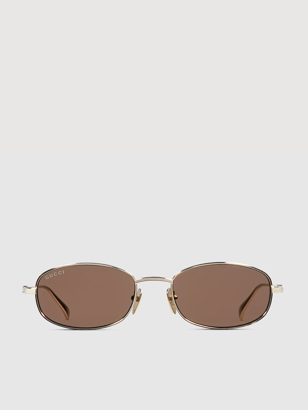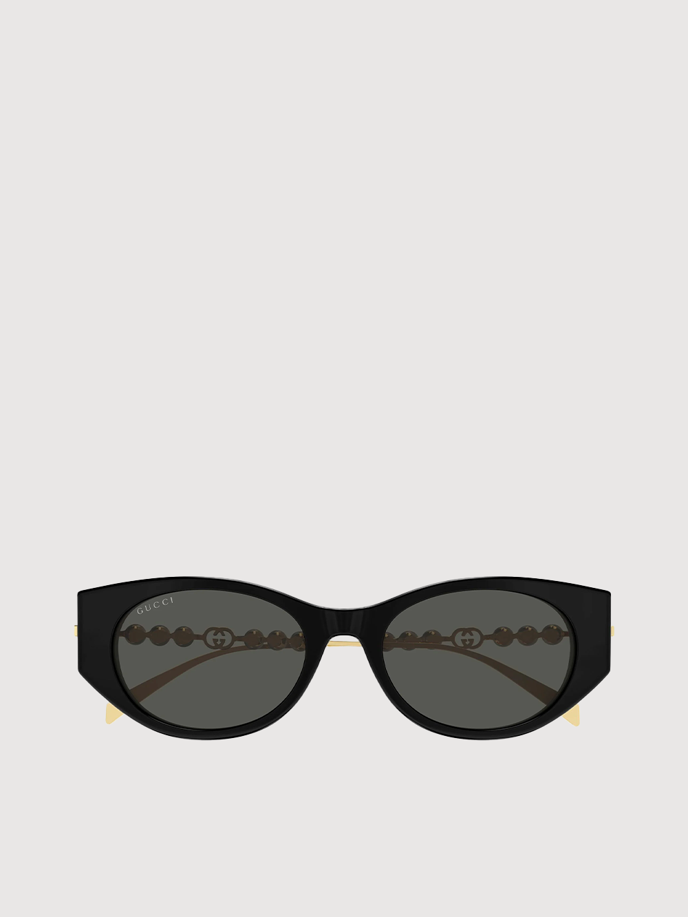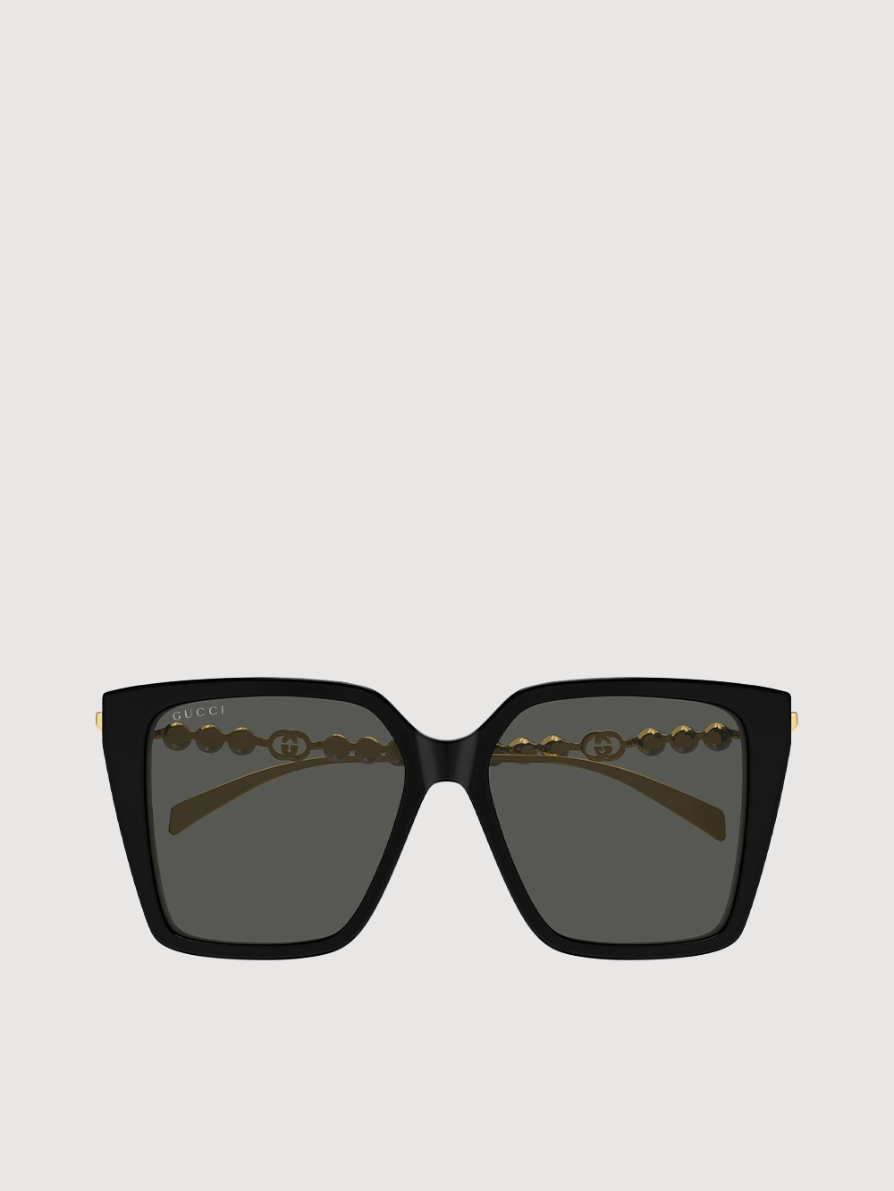 For Cruise 2024, the eyewear selection is defined by archival silhouettes reinterpreted with a contemporary touch. Here, a gold-toned geometric metal frame is decorated with a Double G cut-out detail on the temples.