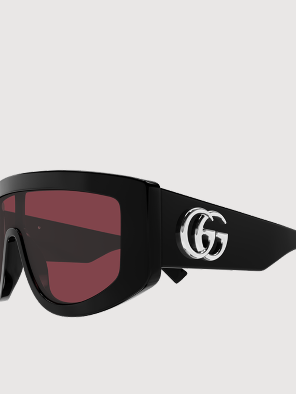 The Pre-Fall 2025 eyewear collection successfully combines the coveted silhouettes of bygone decades with a contemporary logo feel. Here, a black acetate frame pairs with a Double G detail.